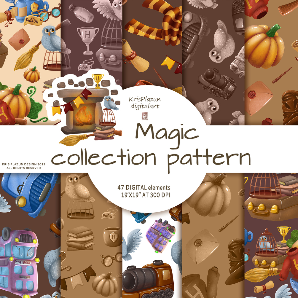Патерны с вещами из Гарри Поттера. Wizarding Watercolor pattern, Wizard pattern, Witch Clipart, Magic Cliparts, Wizard Watercolor, Magic Illustration, Hand Drawn Cliparts